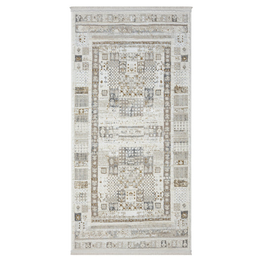 Tauchen Sie ein in die sanfte und einladende Atmosphäre des Chindi-Teppichs "Nandini" in zarten Cremetönen....