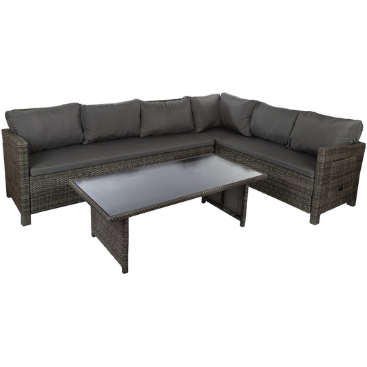 Garten Ecksofa "Zac" 5-Sitzer, mit Beistelltisch und Sitzkissen
