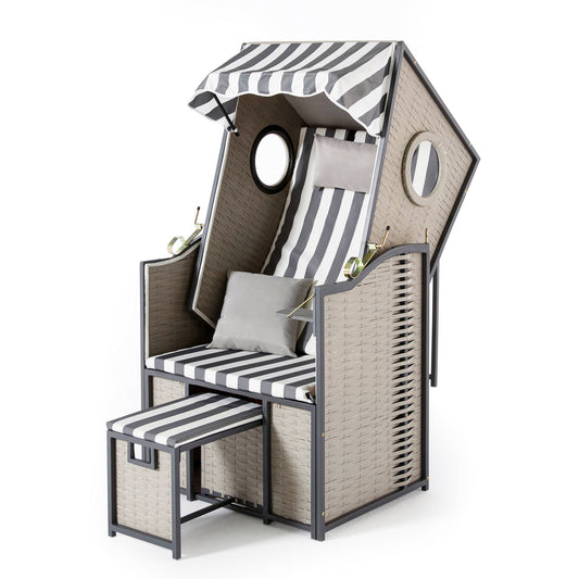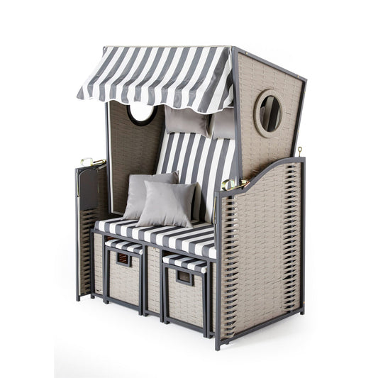 Strandkorb "Kotka" Grau-Weiß Gestreift 2-Sitzer