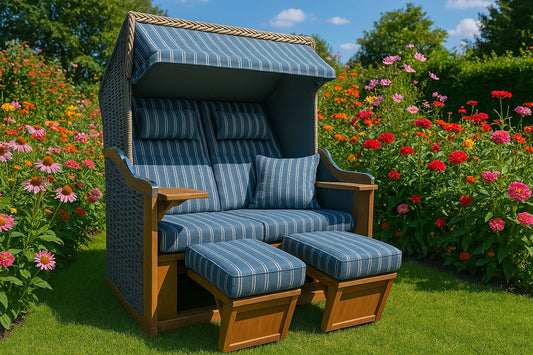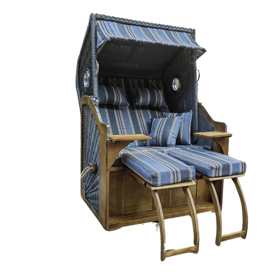 Strandkorb "Malmo" Grau-Blaues Design 2-Sitzer