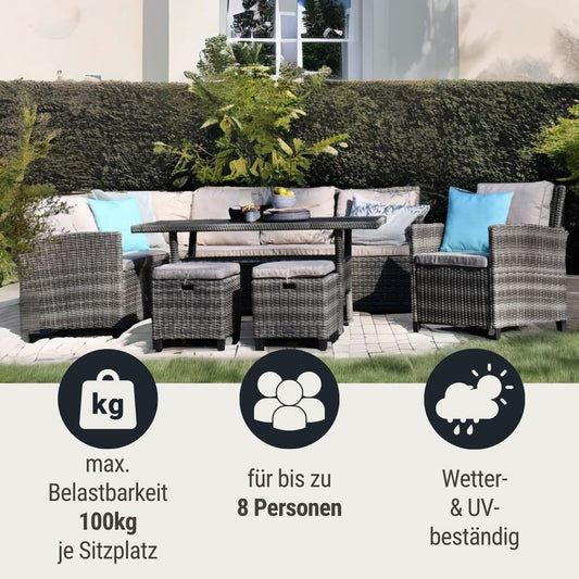 Outdoor Esssitzgruppe "Tini" für 8 Personen, inkl. Sitzkissen