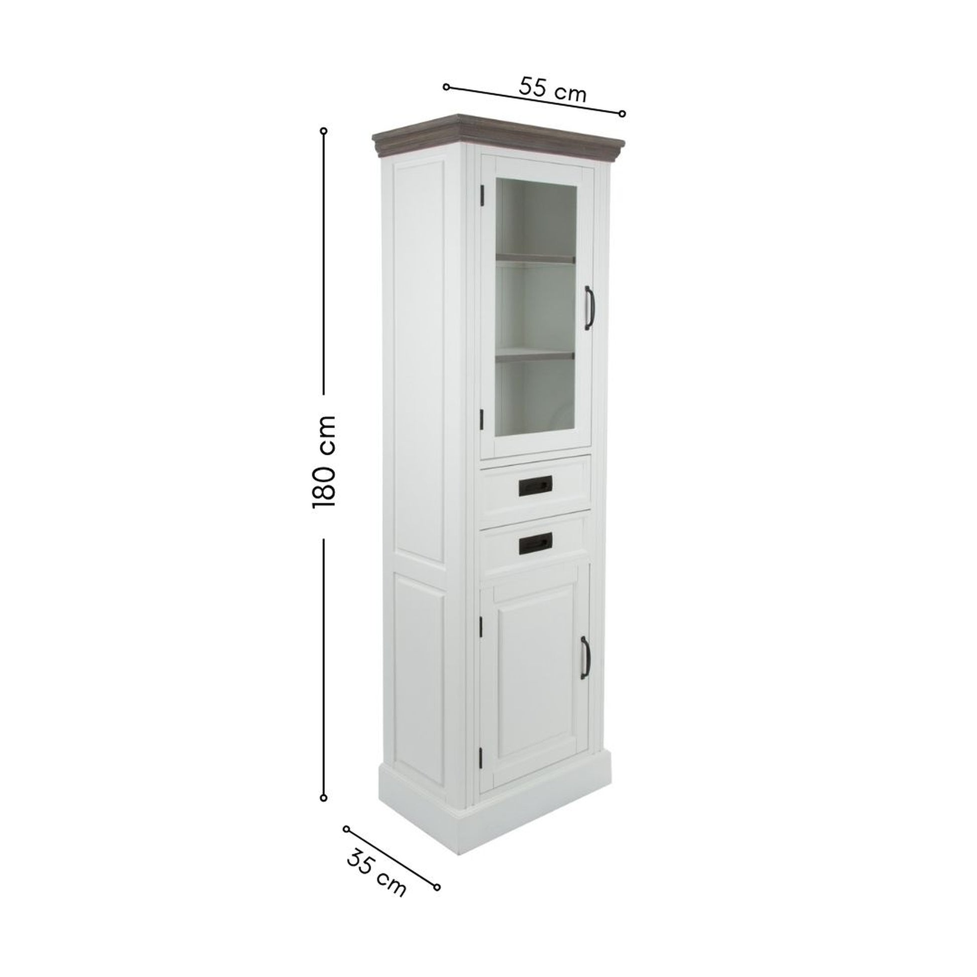 • ELEGANTE VITRINE MIT HOLZ- UND GLASTÜR SOWIE 2 SCHUBLADEN: Diese Vitrine kombiniert Holz- und Glastüren sowie zwei Schubladen für vielseitige Nutzungsmöglichkeiten.