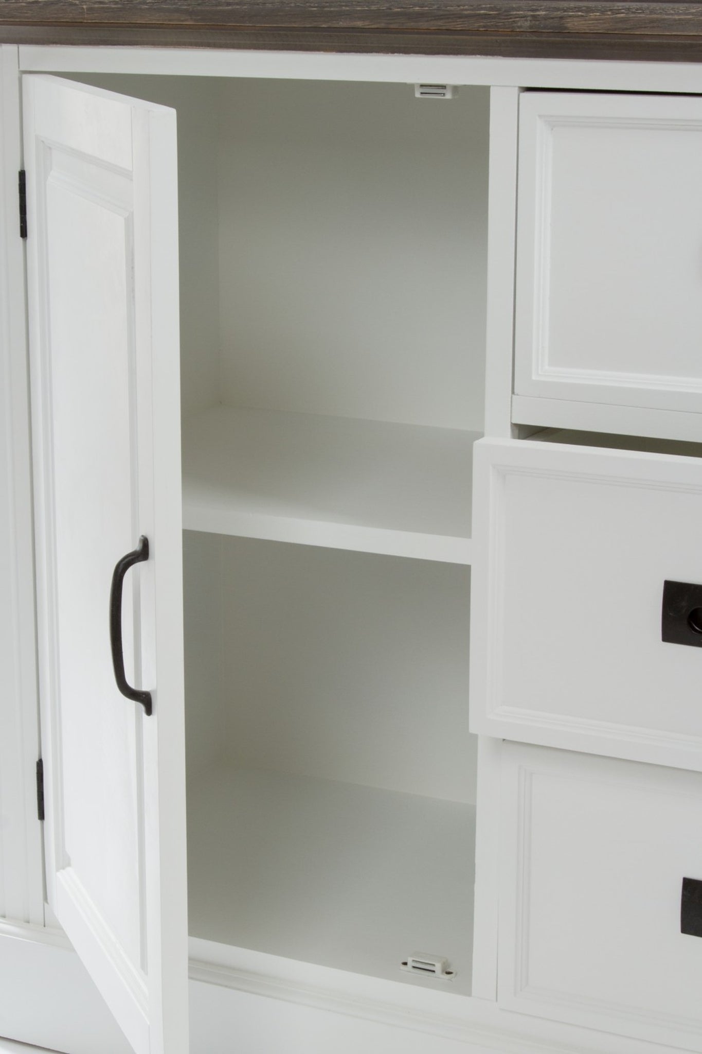 Mit dem Buffetschrank "Viktoria" holen Sie sich Qualität und Funktionalität im modernen Landhausstil direkt in Ihr Zuhause. Nutzen Sie die großzügigen Aufbewahrungsmöglichkeiten, um Ihre Wohnräume organisiert und stilvoll zu gestalten.