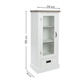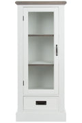• ELEGANTE VITRINE MIT GLASTÜR UND SCHUBLADE: Diese Vitrine verfügt über eine Glastür und eine Schublade, die zusätzlichen Stauraum bietet.