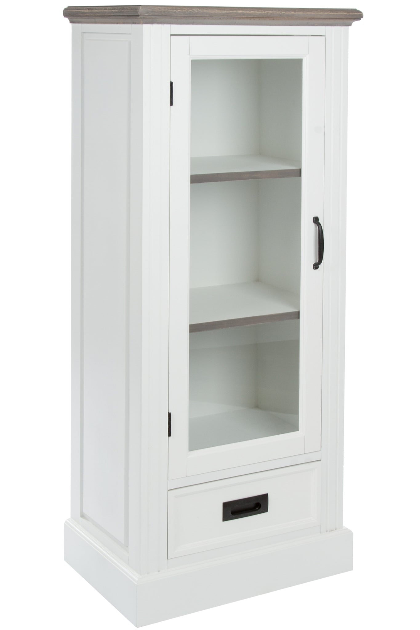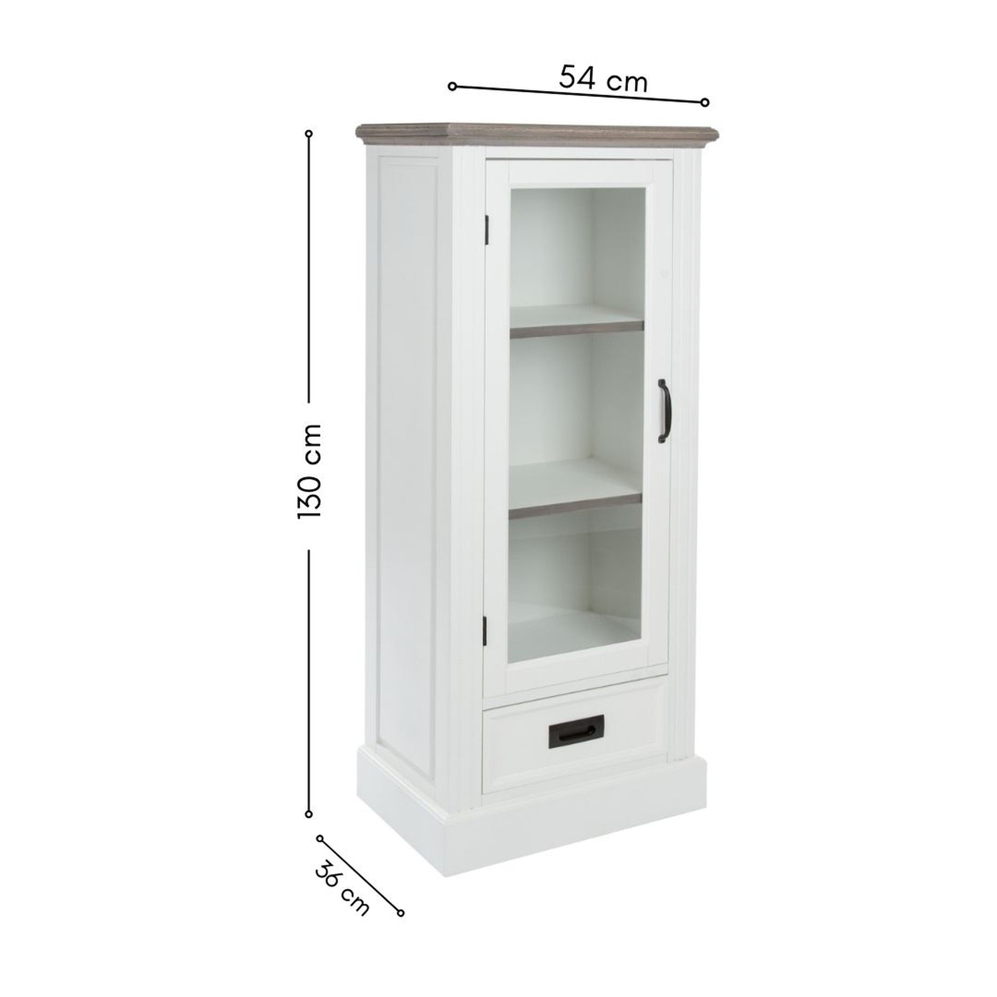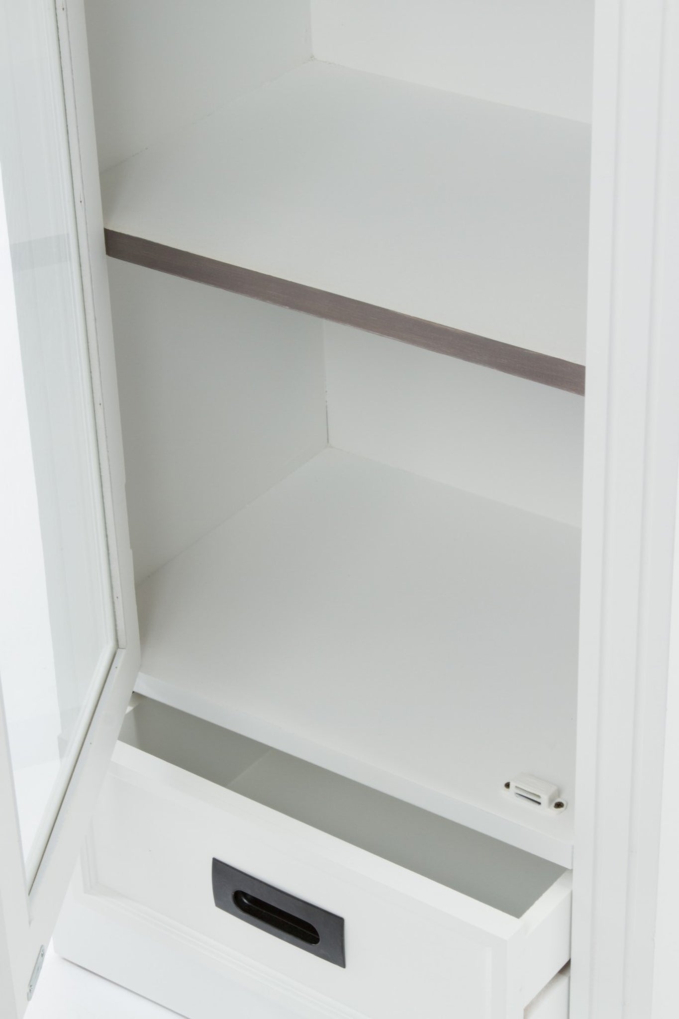 Diese Vitrine ist nicht nur mit einer Glastür, sondern auch einer geräumigen Schublade ausgestattet, die Ihnen zusätzlichen Stauraum bietet und gleichzeitig Ihre wertvollen Gegenstände ordentlich verstaut.