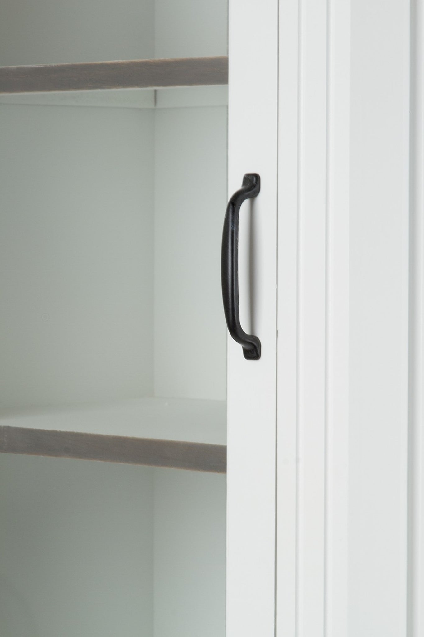 Die moderne Vitrine "Viktoria" aus weißem Holz bietet Ihnen sowohl Eleganz als auch praktische Vielseitigkeit.
