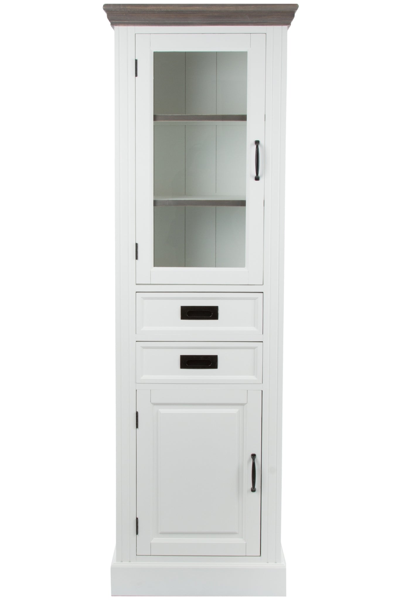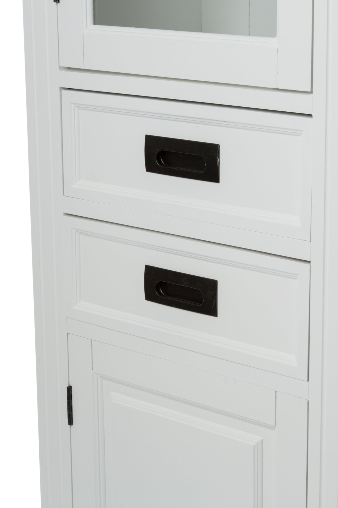 • ELEGANTE VITRINE MIT HOLZ- UND GLASTÜR SOWIE 2 SCHUBLADEN: Diese Vitrine kombiniert Holz- und Glastüren sowie zwei Schubladen für vielseitige Nutzungsmöglichkeiten.