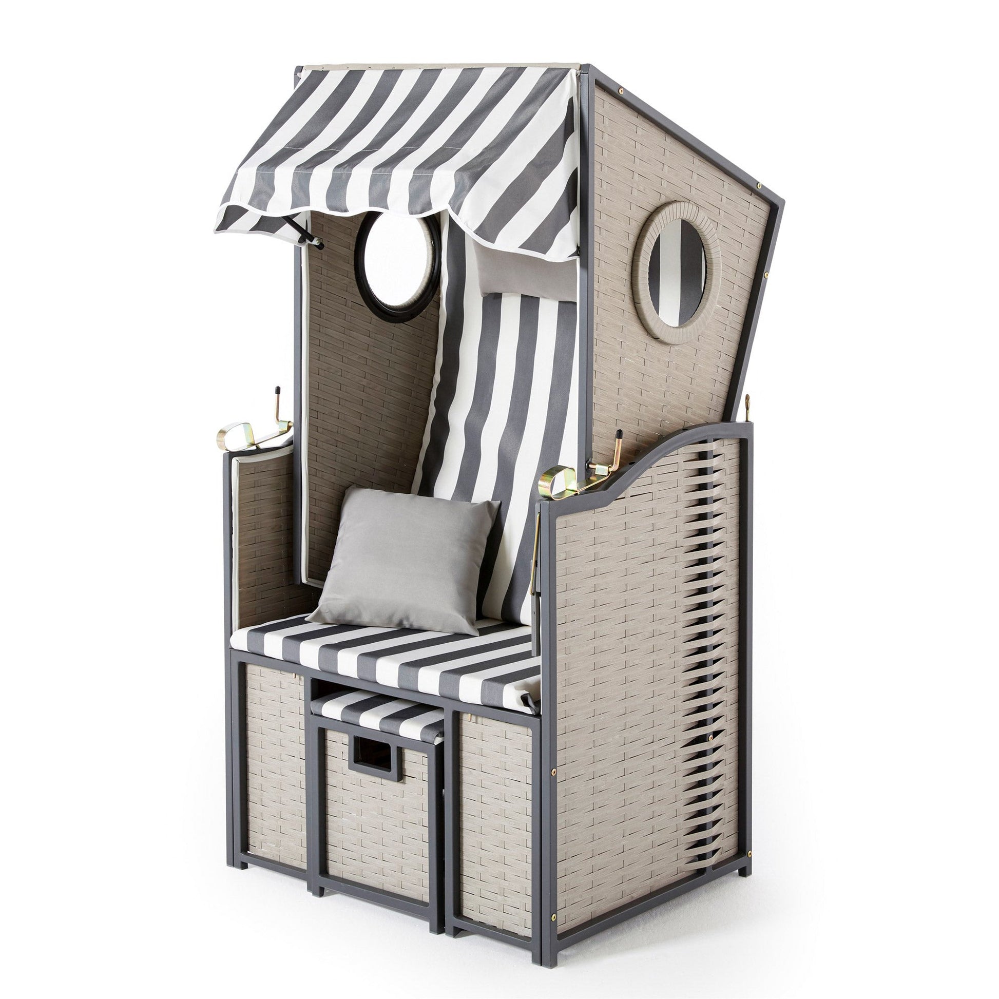 Single Strandkorb "Kapitän" im Martimen Design mit Bullauge
