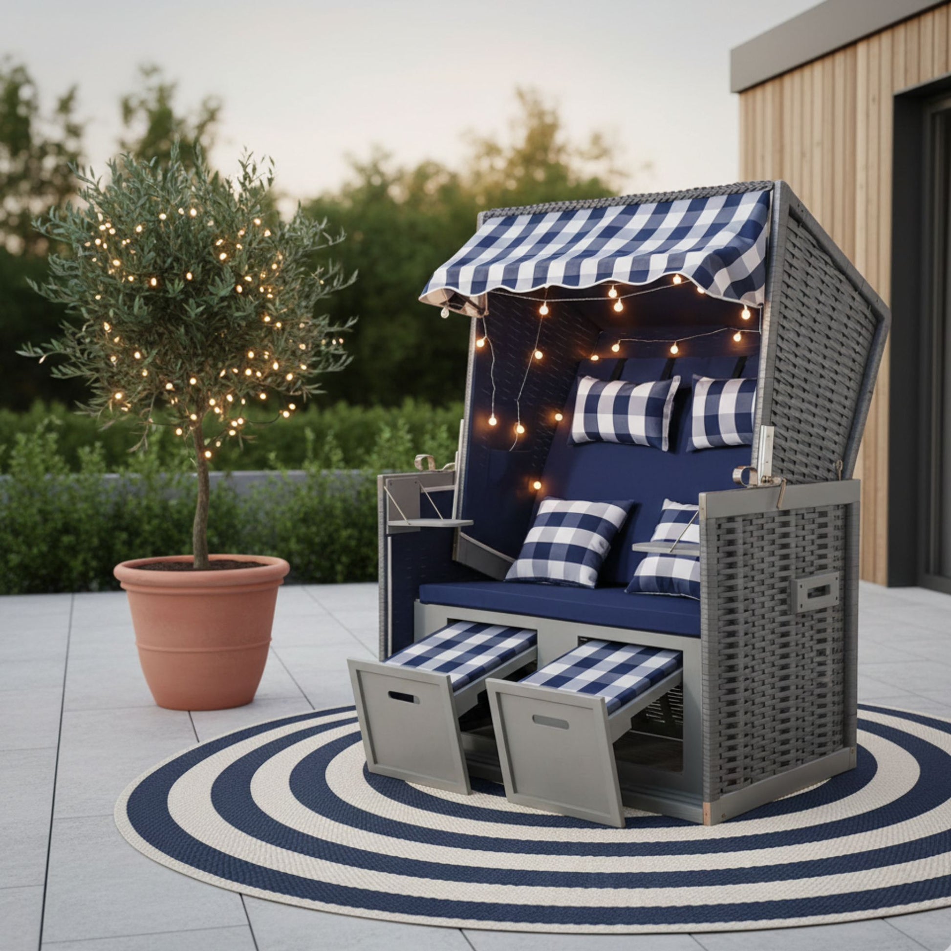 Strandkorb "Anker" mit maritimen Design und LED-Beleuchtung